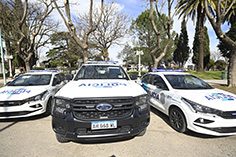 Los nuevos patrulleros y las motos, adquiridos con fondos del Ministerio de Seguridad bonaerense, fortalecerán las tareas de prevención y seguridad en el casco urbano del municipio.