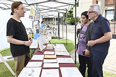Durante la jornada, Zamora recorrió los stands donde dialogó con los expositores sobre las piezas y la actualidad en cada uno de los barrios de la ciudad.