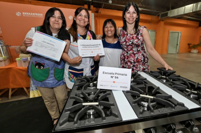 En Berazategui, junto al intendente Juan José Mussi, miembros del Consejo Escolar local, docentes y directivos de establecimientos educativos, los funcionarios entregaron equipamiento para 63 escuelas, consistente en cinco cocinas, dos termotanques, una heladera con freezer, vajillas y utensilios. La inversión en este distrito es de $34.433.087.