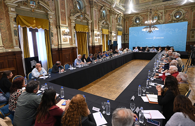 El gobernador de la provincia de Buenos Aires, Axel Kicillof, encabezó este lunes la primera reunión de la Comisión Asesora Canal Magdalena, en la que participaron intendentes de la región capital, referentes sindicales y profesionales de la ingeniería y otras disciplinas. Fue en el Salón Dorado de la Casa de Gobierno junto al ministro de Gobierno, Carlos Bianco; la jefa de Asesores del Gobernador, Cristina Álvarez Rodríguez; y la ministra de Mujeres y Diversidad, Estela Díaz.