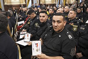 Por su parte, Alonso subrayó: «Esta entrega de medallas es un reconocimiento hacia nuestros efectivos que ponen en riesgo su vida para salvaguardar a su comunidad: nos sentimos orgullosos de estos oficiales que marcan el camino para las nuevas generaciones que cuidarán la seguridad de las y los vecinos bonaerenses».