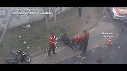 El siniestro vial ocurrió en la intersección de Colectora Este e Italia. Desde la central de monitoreo del Municipio de Tigre registraron el choque y activaron el protocolo de Protección Ciudadana: los profesionales médicos del SET constataron que el conductor de la moto se encontraba fuera de peligro.