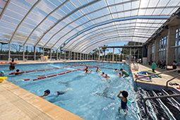 El nuevo natatorio municipal – ubicado en la intersección de las calles Antártida Argentina y Corrientes – consta de un total de 800m2 que incluye una pileta semiolímpica con techo corredizo, vestuarios, sala de máquinas y consultorios médicos.