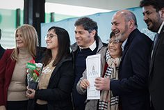 Además, el Gobernador y la vicegobernadora Verónica Magario entregaron títulos de propiedad gratuitos a familias del distrito y equipamiento para escuelas del Servicios Alimentario Escolar (SAE).