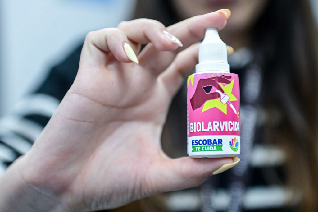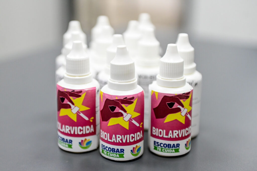 La Municipalidad de Escobar puso a disposición de la comunidad el innovador biolarvicida que tiene la capacidad de matar las larvas del mosquito Aedes aegypti, transmisor de la enfermedad del dengue. Este producto ya se encuentra disponible en las Unidades de Gestión Comunitaria (UGC) del distrito, donde los vecinos y vecinas podrán retirar un gotero por vivienda a cambio de un litro de aceite o dos paquetes de harina, contribuyendo así al programa Escobar Hambre Cero.