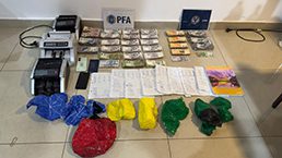 Además, se incautaron 14.683.500 pesos en billetes de baja denominación, tres chalecos antibalas, dos chalecos tácticos policiales, tres automóviles, dos motocicletas con pedido de secuestro, dos máquinas termoselladoras, siete contadoras de billetes, balanzas de precisión, una computadora, 22 teléfonos celulares y documentación relevante para la causa.