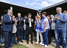 El gobernador de la provincia de Buenos Aires, Axel Kicillof, visitó este miércoles un centro de jubilados y un taller que promueve la inserción social y laboral de personas con discapacidad en el municipio de General Pinto. Fue junto al ministro de Desarrollo de la Comunidad, Andrés Larroque; el presidente de la Cámara de Diputados bonaerense, Alexis Guerrera; el intendente interino, Fernando Rodríguez.