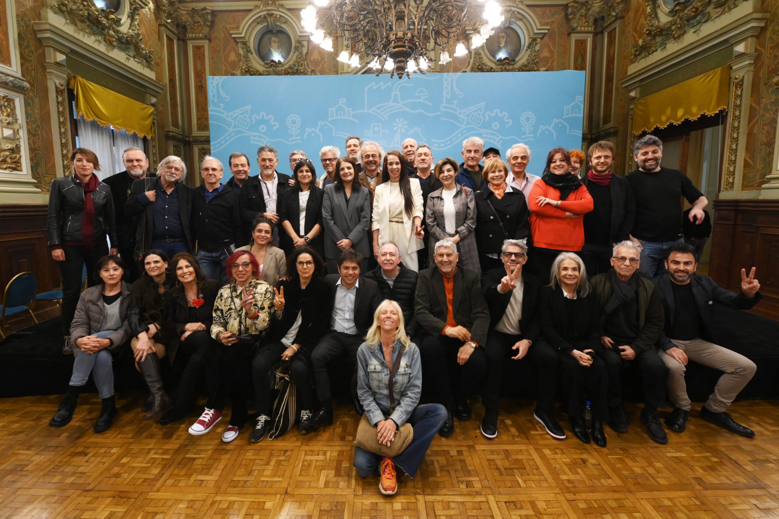 El gobernador de la provincia de Buenos Aires, Axel Kicillof, encabezó este lunes una reunión con artistas y referentes de la cultura en el Salón Dorado de la Casa de Gobierno. Fue junto al ministro de Producción, Ciencia e Innovación Tecnológica, Augusto Costa; las subsecretarias de Promoción Sociocultural, Lorena Riesgo; y de Políticas Culturales, Victoria Onetto; y el director del Teatro Argentino, Ernesto Bauer.