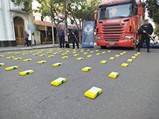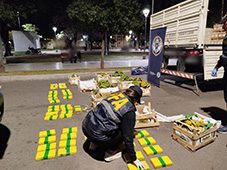 Los uniformados detuvieron su marcha inmediatamente y el conductor adujo transportar cajones de bananas y papayas desde la localidad de Perico, provincia de Jujuy, con destino al Mercado Central, provincia de Buenos Aires. En la inspección, los funcionarios detectaron incoherencias en la hoja de ruta, el destino y lo declarado por el chofer, por lo que con apoyo del can detector “Yana”, registraron la carga minuciosamente y el animal reaccionó como la hace habitualmente ante la presencia de estupefacientes.