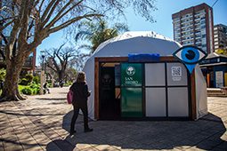 Con el objetivo de que los vecinos se puedan capacitar rápidamente para sumarse al programa de seguridad Ojos en Alerta, el Municipio de San Isidro instaló un domo con una pantalla gigante en la plaza Hipólito Yrigoyen, ubicada en la avenida Centenario 77.