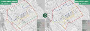Desde el próximo lunes, se reorganizarán los ramales Azul, Verde y Rojo en dos nuevos ramales -A y B- para reducir superposiciones y mejorar la cobertura en las zonas de mayor demanda. Los ramales 8 (ex700) y Naranja no se modifican. Con el nuevo esquema, se pasará a tener más servicios por hora en las franjas de mayor uso, de 6 a 20 hs, lo que significa colectivos más seguidos y menos tiempo de espera para los usuarios. Este cambio responde a la necesidad de mejorar la eficiencia del servicio, aumentando la frecuencia de los colectivos y garantizando la sostenibilidad del servicio en el futuro. También se reducirán el consumo de combustible y las emisiones de CO2.